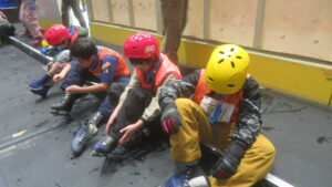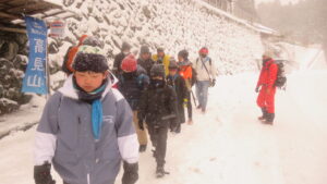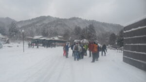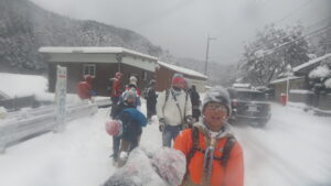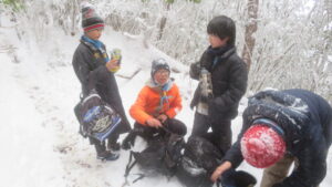 下山後、隊員たちはバスの待ち時間に非常食を食べて、雪遊びをして休憩ののち、予定より早めに帰路に着きました。