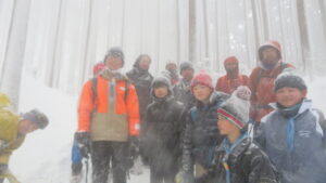 天気予報通りの低温・強風で、登山口からゴールのたかすみ温泉までアイゼンをつけたままの登山になりました。